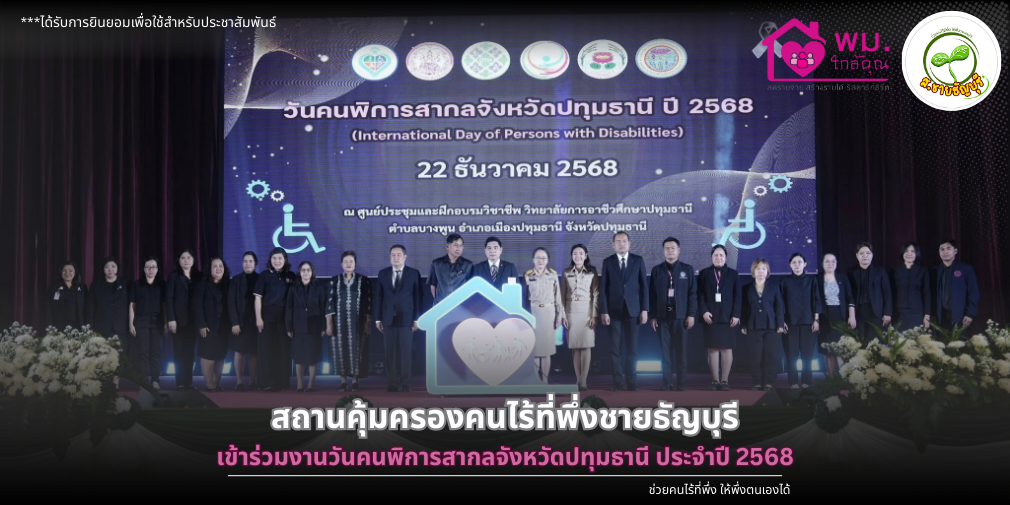 วีดีทัศน์ สถานคุ้มครองคนไร้ที่พึ่งชายธัญบุรีวีดีทัศน์ สถานคุ้มครองคนไร้ที่พึ่งชายธัญบุรี 7 ม.2 ต.รังสิต อ.ธัญบุรี จ.ปทุมธานี 12110 เว็บไซต์ : www.thanyamen.dsdw.go.th เบอร์โทรศัพท์ : 02-5771312, 02-5772741 -------------------------------------------------------------------------- Thanyaburi home for the Destitute (MEN) 7 Moo 2 Rangsit, Thanyaburi, Pathumthani, 12110 Website : www.thanyamen.dsdw.go.th Tel : 02-5771312, 02-5772741